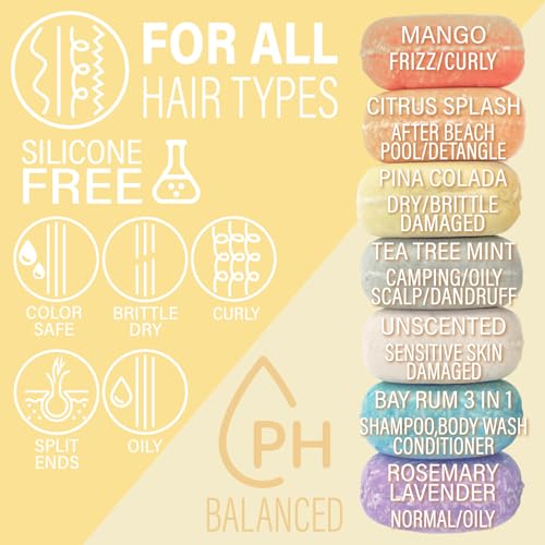 SAFE FOR COLOR-TREATED HAIR. These natural shampoo and conditioner bars are safe for color-treated hair. Use the hair shampoo bar to rinse off the color-dulling buildup from styling products. Use the hair conditioning bar as a rinse-away or leave-in conditioner for curly, dry, damaged, or frizzy hair. The conditioner bar also makes for a great shave bar.