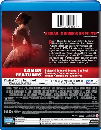 - Includes Blu-ray, DVD and a digital copy of Abigail (2024) (Subject to expiration. Go to NBCUCodes.com for details.)