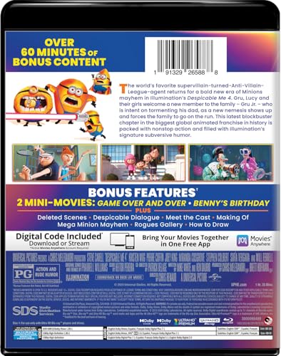 - Includes 4K UHD, Blu-ray and a digital copy of Despicable Me 4 (Subject to expiration. Go to NBCUCodes.com for details.)