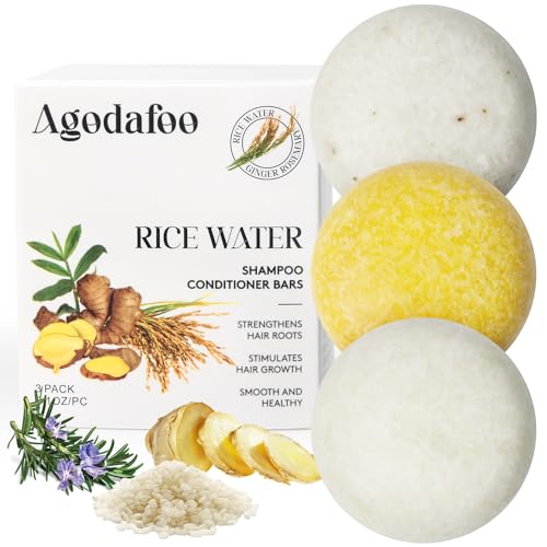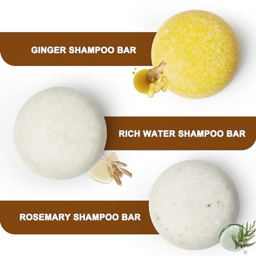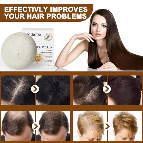 【3 IN 1 Shampoo Bar and Conditioner Set】Our shampoo bar and conditioner set Infused with Rice Water or Ginger(Shampoo Bar) & Rosemary(Conditioner)nature ingredients, which can deep cleaning hair, effectively removes grease and buildups,aiti dandruff and offering clean, healthy, beautiful hair. Nourish, relieve scalp itching, promotes healthy hair growth