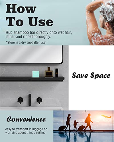 convenient on the go: These solid shampoo bars are a convenient option for travel, camping, airplane or on the go, since they are compact and don’t take up much space in your suitcase and no worry about leaking!